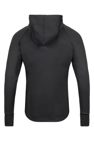 Based on our best-selling cold weather top. this long sleeve compression top features an added hood with a high front collar and drawcord closure.