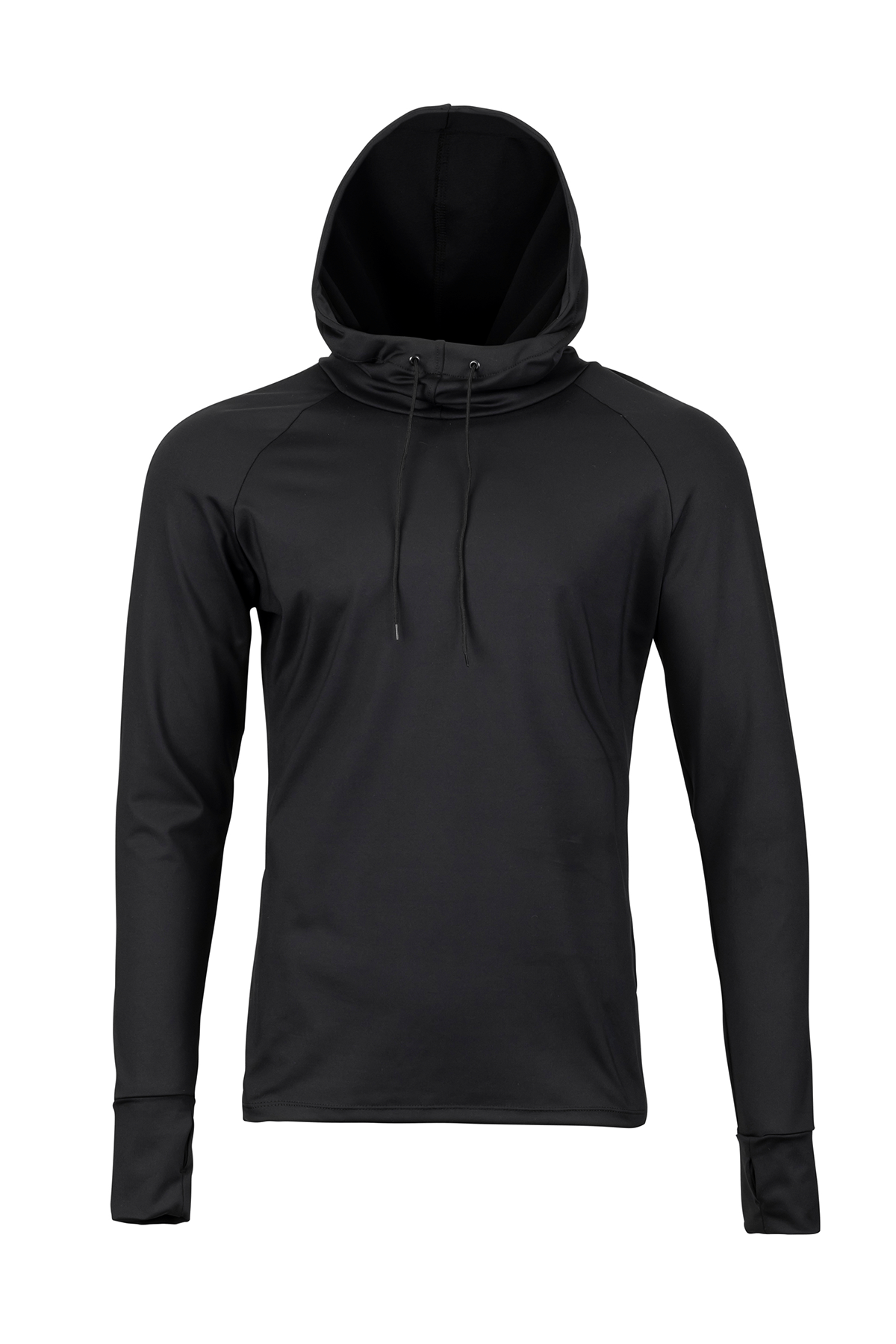 Based on our best-selling cold weather top. this long sleeve compression top features an added hood with a high front collar and drawcord closure.