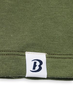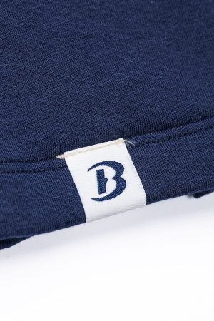 - Branded woven label on the outside lower left hem